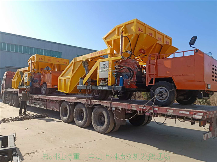 新聞中心 建特自動(dòng)上料噴漿機(jī)吊裝噴漿機(jī)組是在吊裝噴漿機(jī)組基礎(chǔ)上衍生新一噴漿設(shè)備,適于混凝土噴射施工作業(yè)。根據(jù)料斗備有單料斗吊裝噴漿機(jī)組、雙料斗吊裝噴漿機(jī)組;根據(jù)帶動(dòng)吊裝噴漿機(jī)組數(shù)量又有一拖吊裝噴漿機(jī)組、一拖三吊裝噴漿機(jī)組;無(wú)論哪種置均可實(shí)現(xiàn)自動(dòng)上料,也統(tǒng)稱(chēng)為自動(dòng)上料吊裝噴漿機(jī)組?;炷恋跹b噴漿機(jī)組具有、結(jié)構(gòu)合理、操作簡(jiǎn)單、性能穩(wěn)定、經(jīng)久耐特點(diǎn)。在降低了施工人員數(shù)量及工作強(qiáng)度同時(shí)也保證工作效率,很大程度提高了噴漿作業(yè)經(jīng)濟(jì)效益。